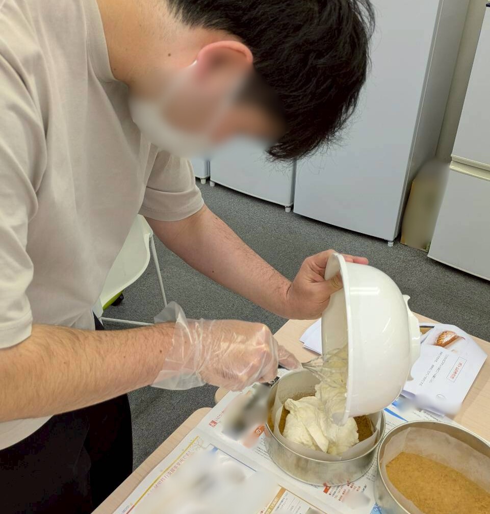 合わさったらケーキホールに流し込みます。